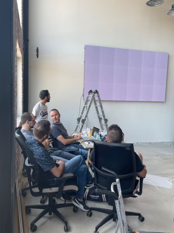 C'est pour cela que nous avons installé ce mur d'image de 1,62m de hauteur sur 2,88m de largeur constitué de 18 cabinets LED 2 mm. Rien de mieux pour diffuser du contenu avec une qualité exceptionnelle et des couleurs vibrantes. De la préparation au montage en passant par les réglages, nos techniciens ont travaillé sur cette belle installation avec l'aide de Donovan Feeri ingénieur avant vente chez Samsung. Donovan a été présent tout au long du processus afin d'accompagner l'équipe et de donner des conseils expert sur les bonnes pratiques pour monter correctement et efficacement ce mur d'image