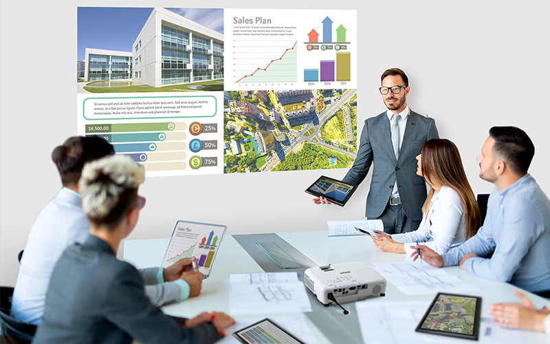 Captez l'attention de votre auditoire et privilégiez un environnement collaboratif avec des solutions simples de connectivité. Avec l'application iProjection1, il est facile d'afficher du contenu à partir d'ordinateurs et d'appareils mobiles. Grâce à la fonction de partage d'écran, vous pouvez afficher simultanément le contenu de plusieurs appareils, tandis que la fonction modérateur vous permet de passer en revue le contenu avant sa diffusion. Ce projecteur dispose d'un haut-parleur 16 W intégré permettant d'entendre clairement le contenu audio, sans avoir à utiliser d'enceintes externes supplémentaires.